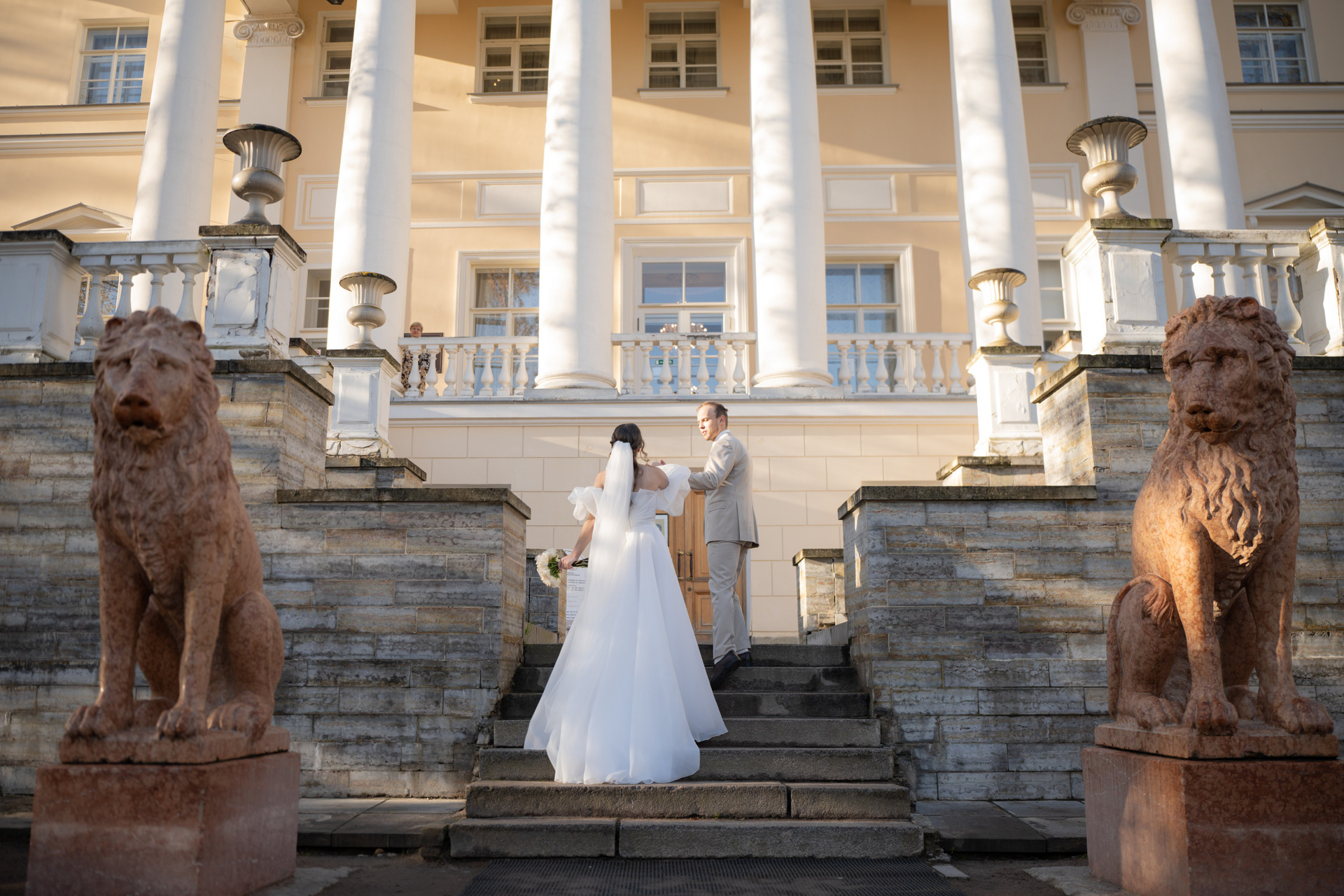 После церемонии бракосочетания рекомендую фотосессию около ЗАГСа, фотосессию в интерьерах Екатерининского дворца или на просторах Екатерининского парка. В случае плохой погоды или при желании разнообразить фотографии, рекомендую обратить внимание на LeonаДача