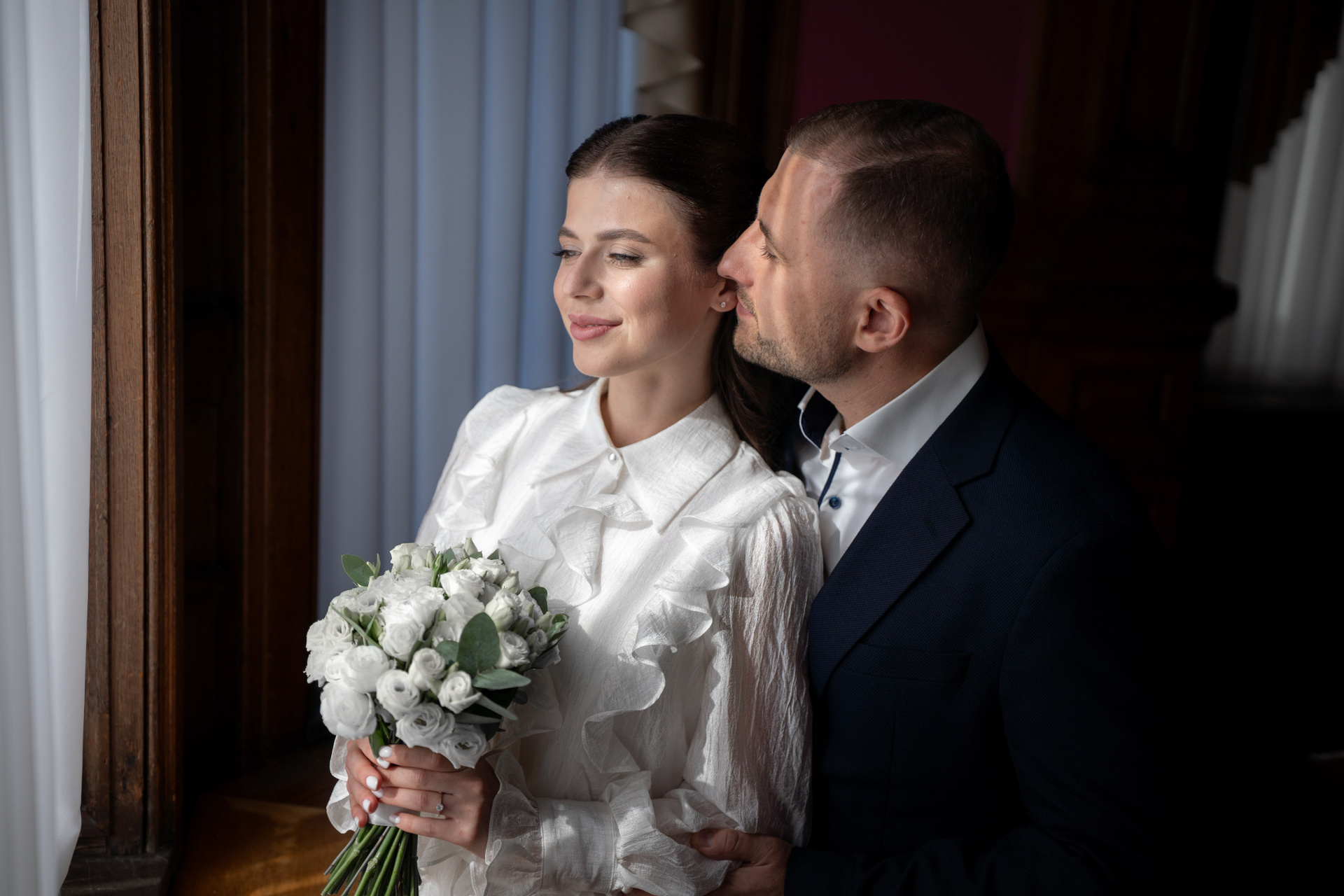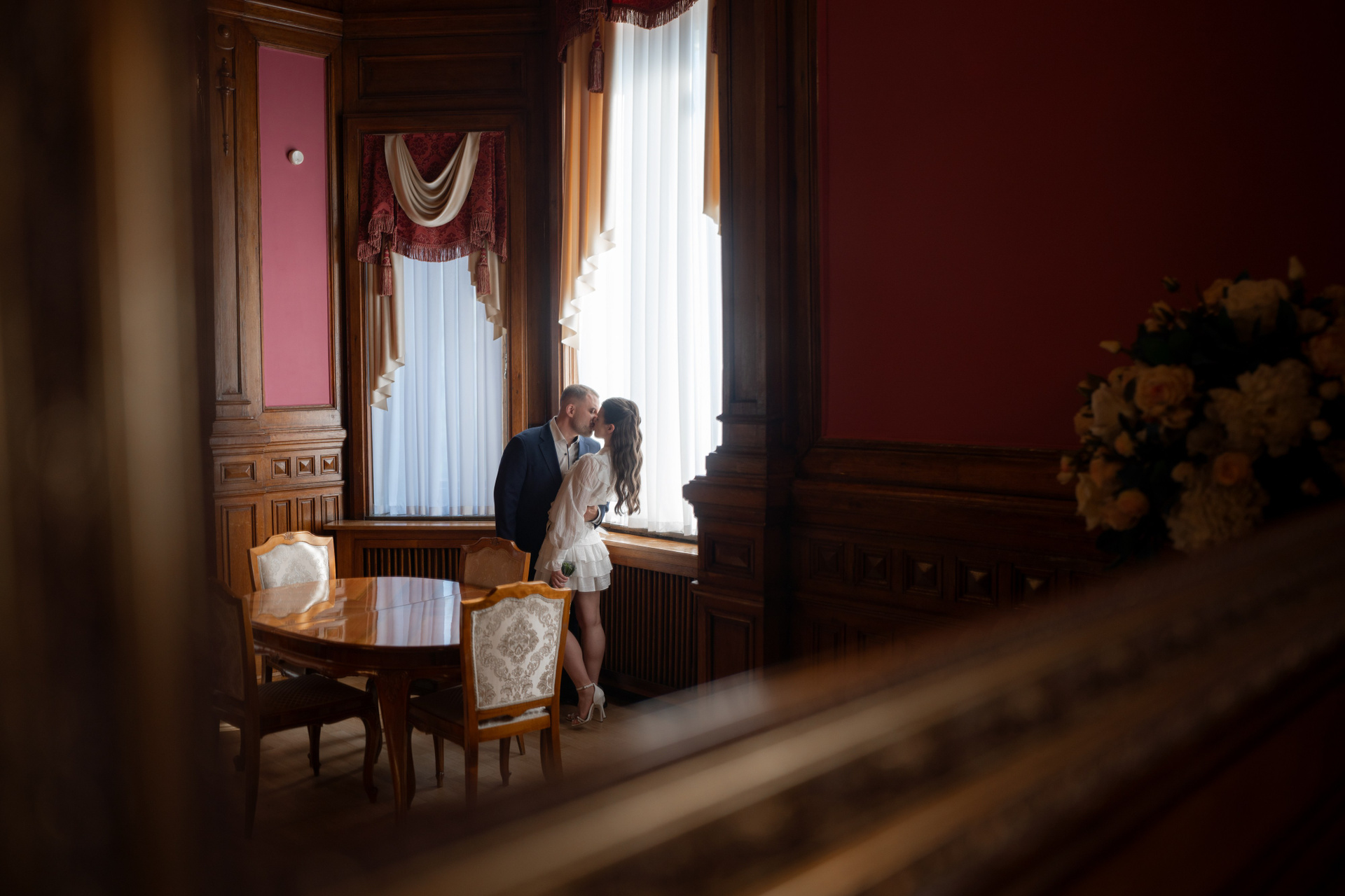 Фотосессия молодожен в музыкальной и красной гостиной
