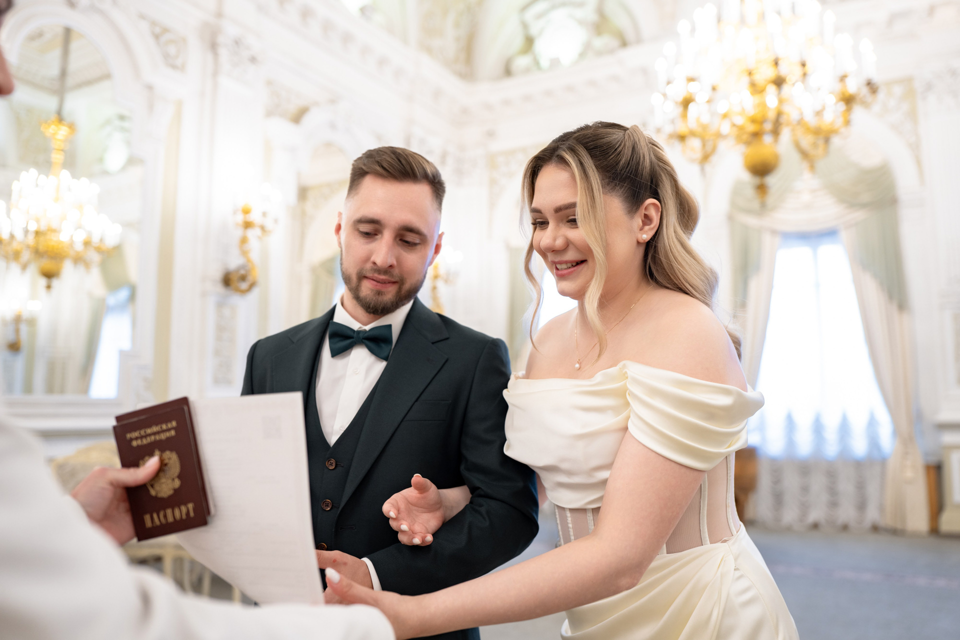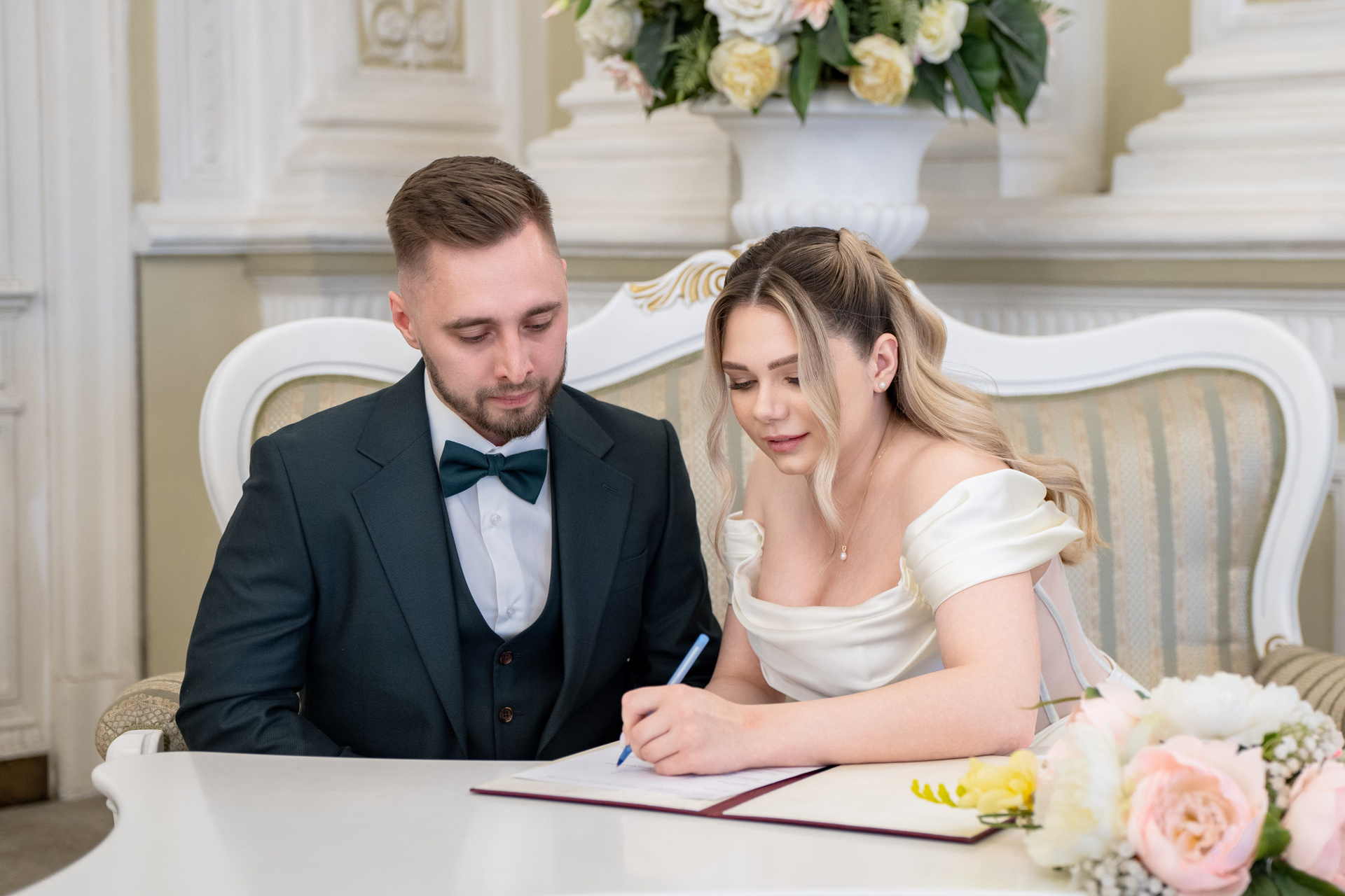 Церемония бракосочетания во Дворце 2 и репортажная свадебная прогулка