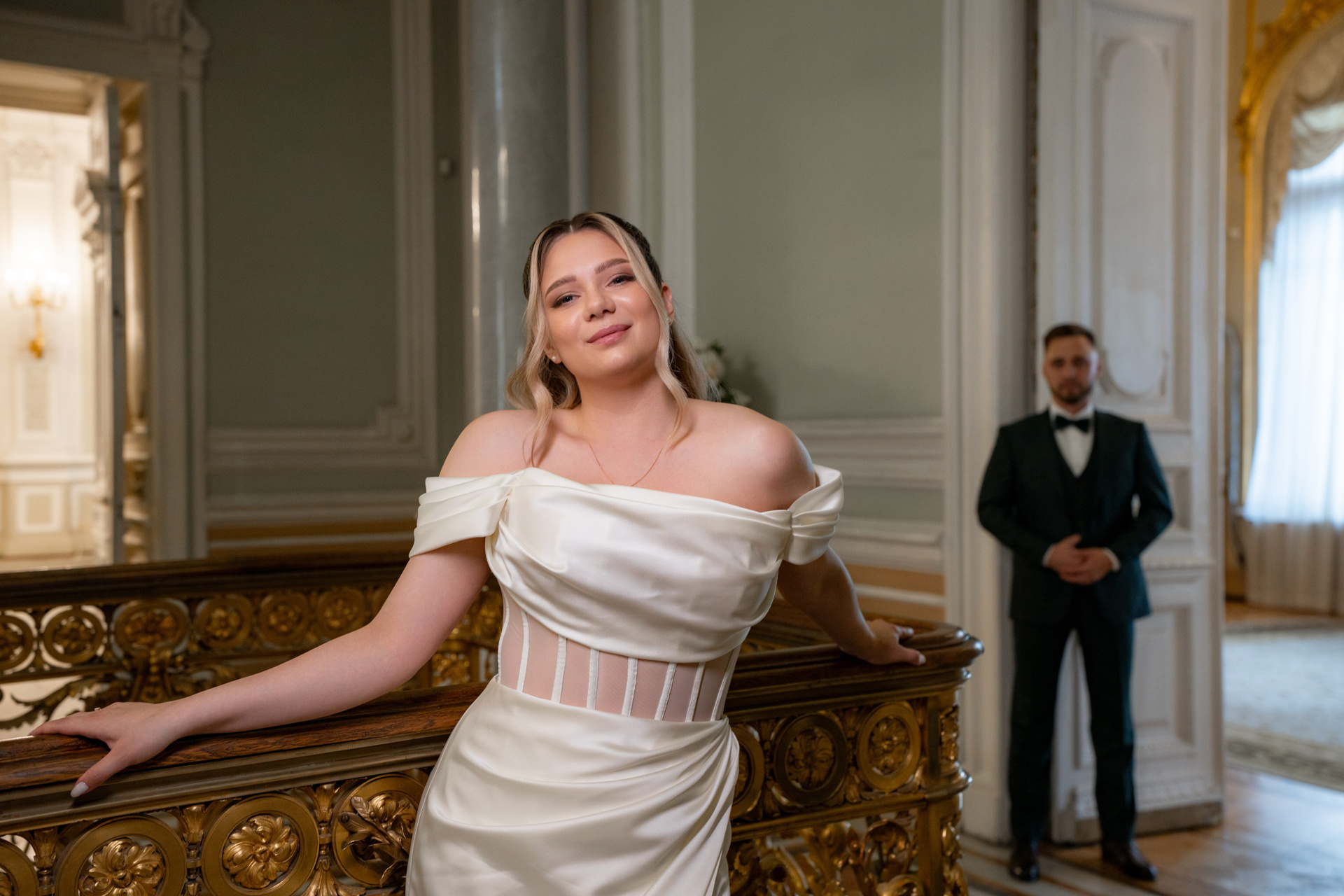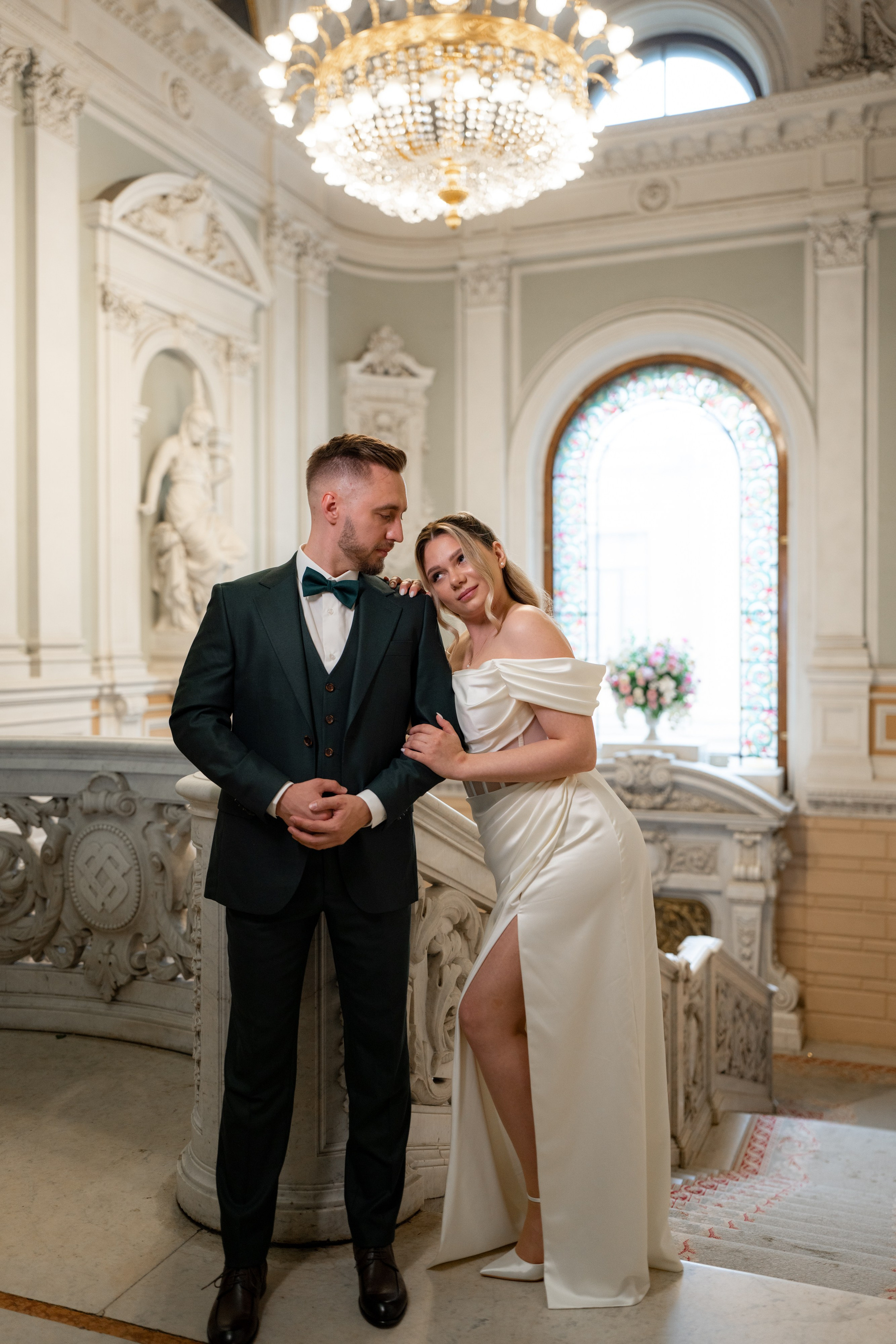 Свадебная фотосессия на Витебском вокзале, Исаакиевской площади, роспись во дворце № 1 и небольшой банке.