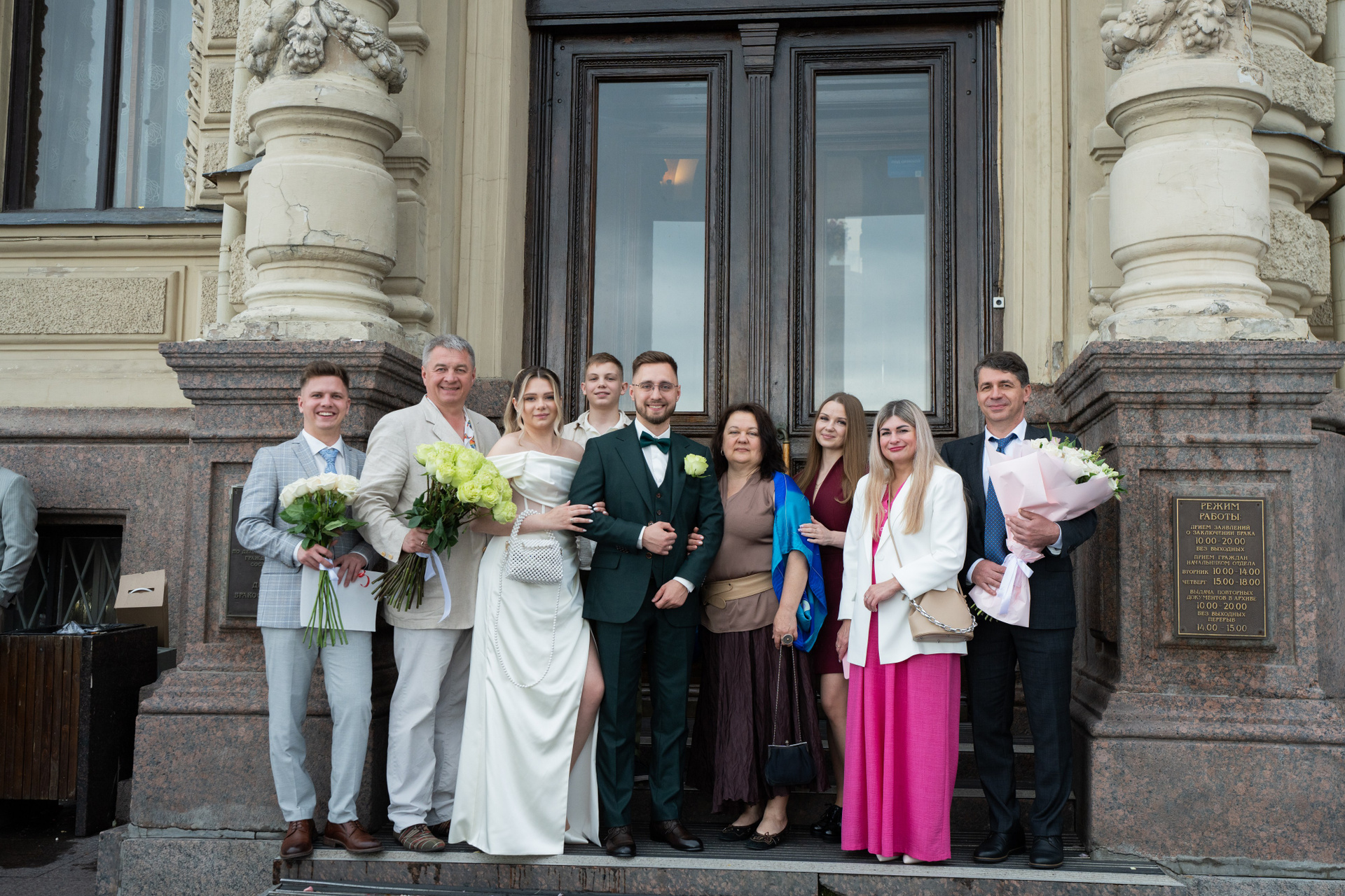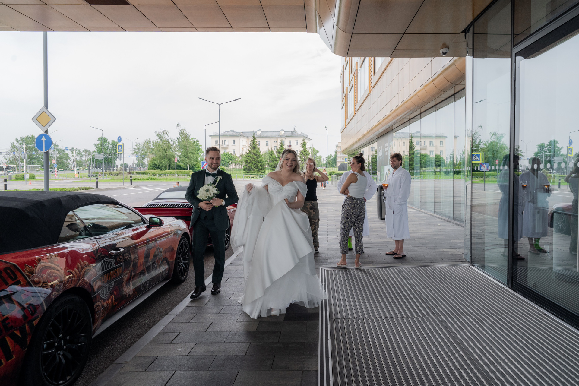 Сборы в отеле Индиго, съемка в Академии художеств, роспись во дворце бракосочетания№ 2 и банкет Нева Холл.