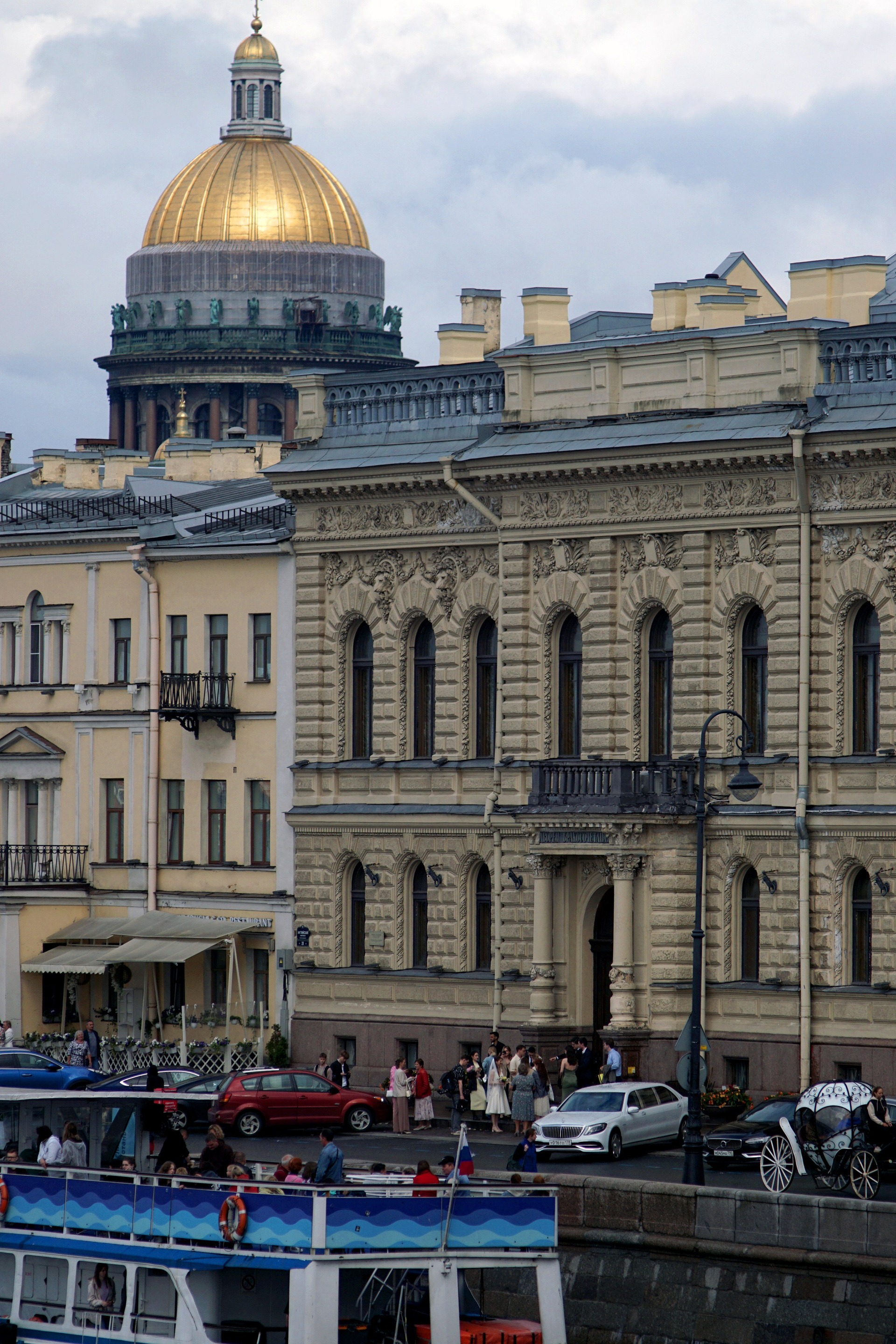 Свадебная пешая прогулка по центру Петербурга. Вечерний банкет на катере на Неве