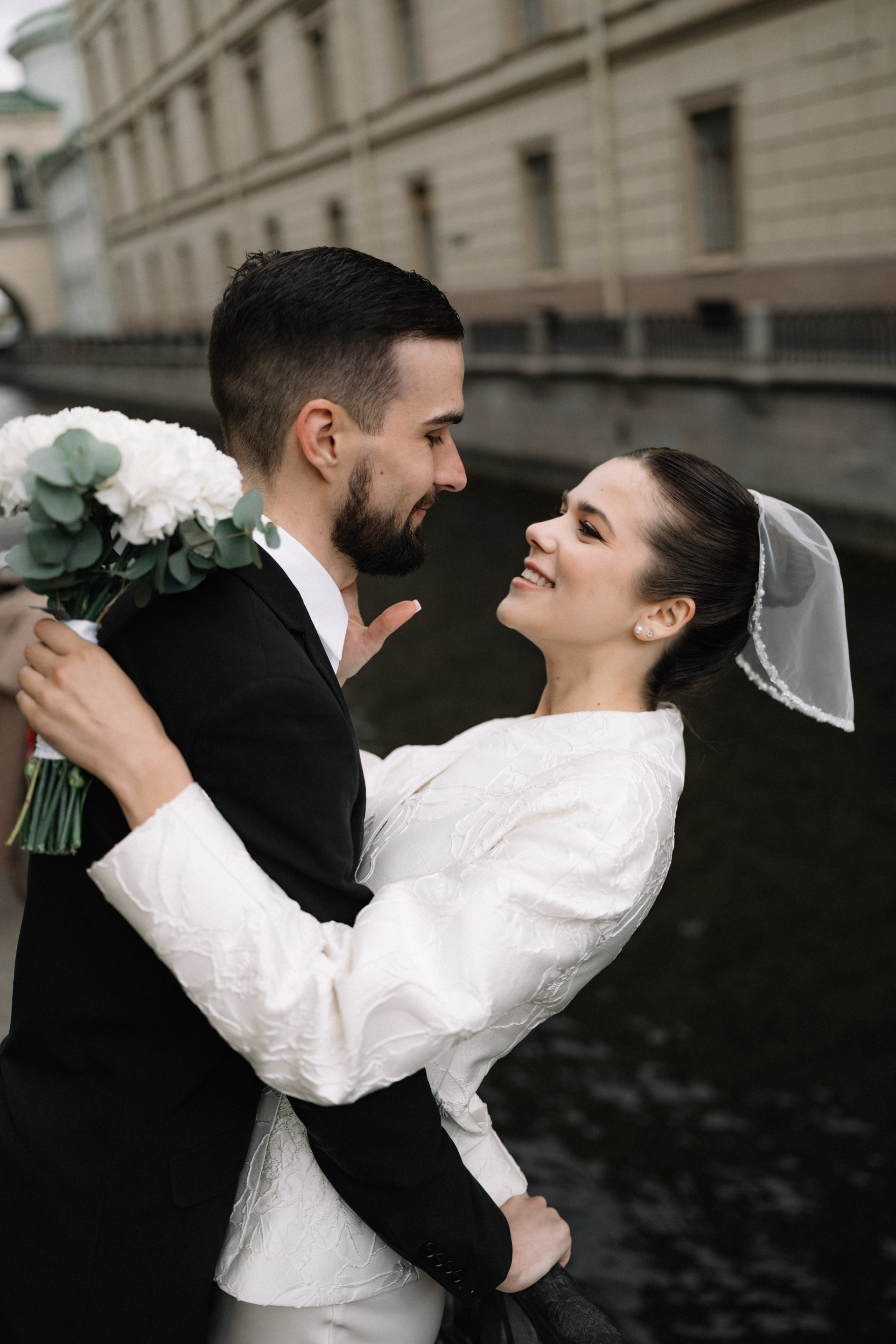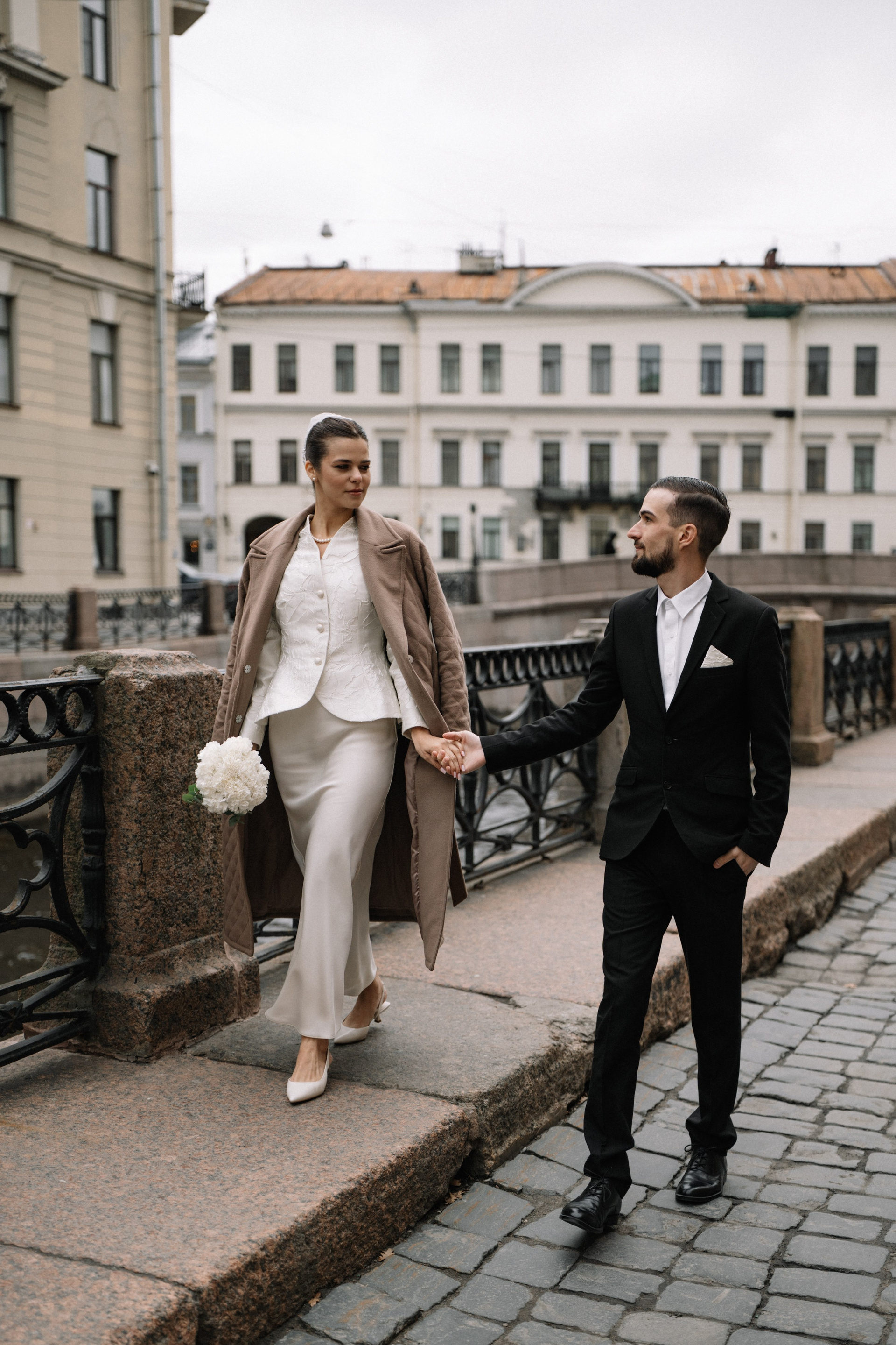 Свадебная пешая прогулка по центру Петербурга. Вечерний банкет на катере на Неве