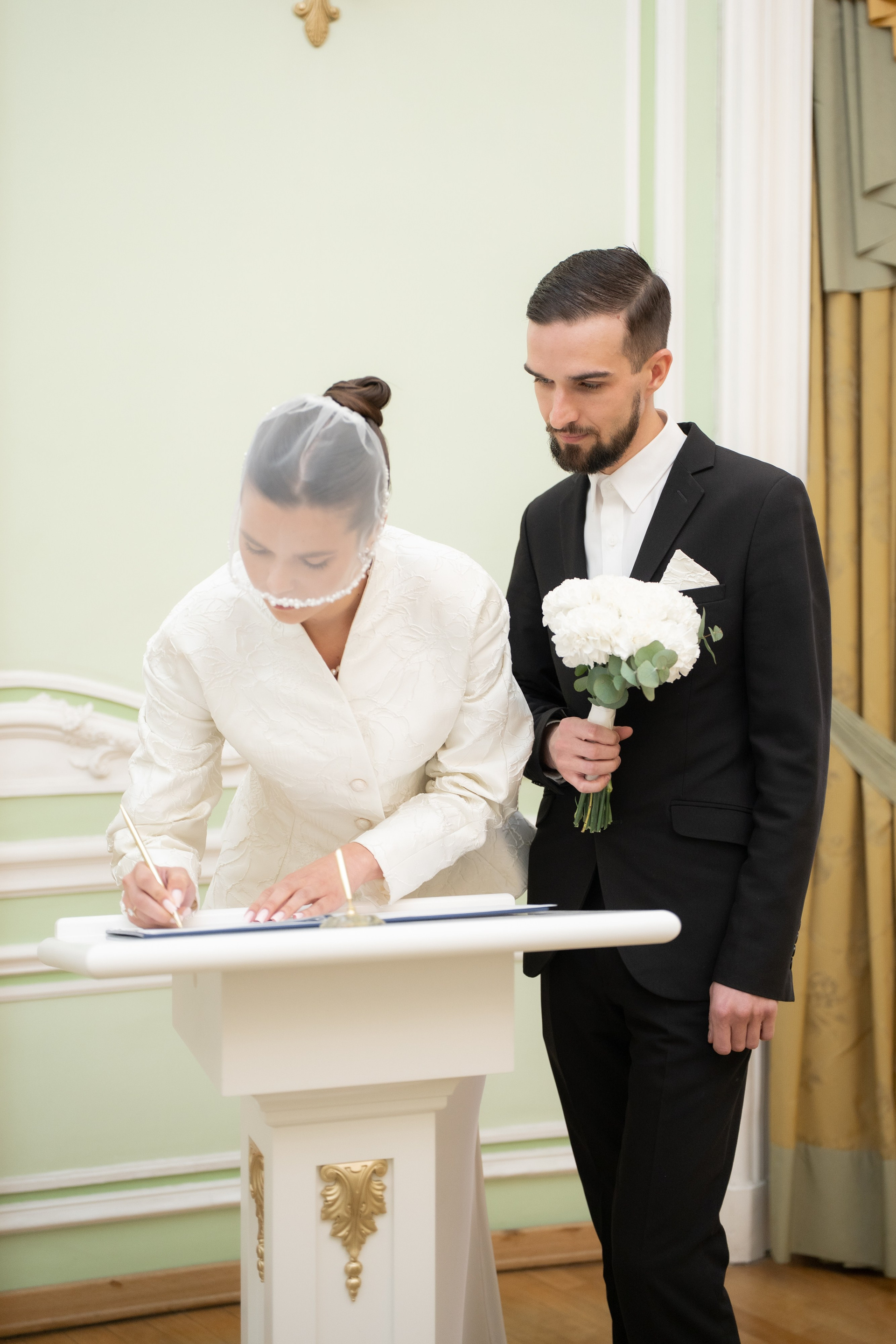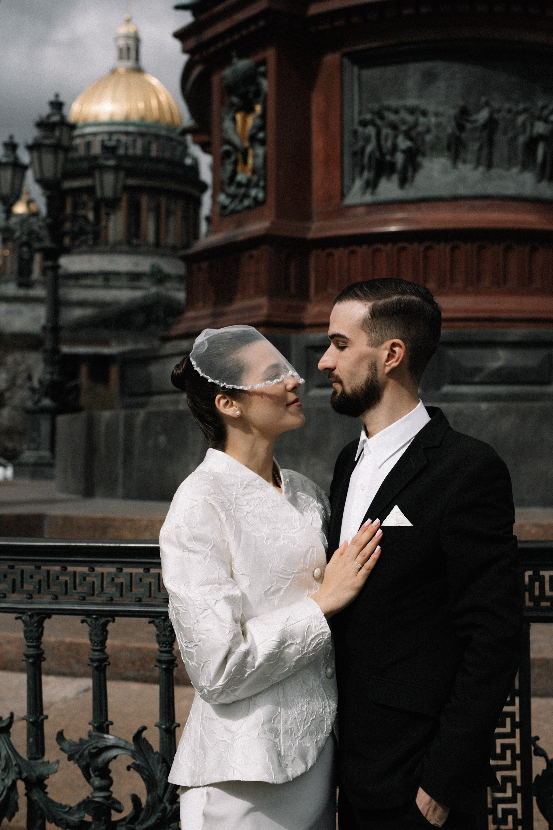 Свадебная фотосессия на Витебском вокзале, Исаакиевской площади, роспись во дворце № 1 и небольшой банке.
