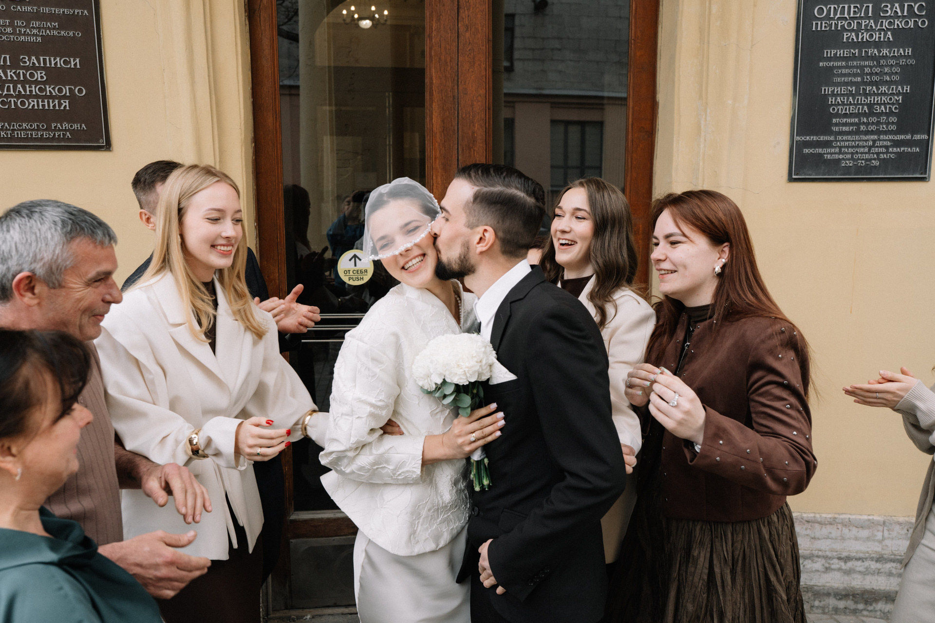 Быстрая съемка в отеле, дворец бракосочетания № 1 прогулка на Исаакиевской площади, Зимняя канавка и банкет в ресторане «Гламур».