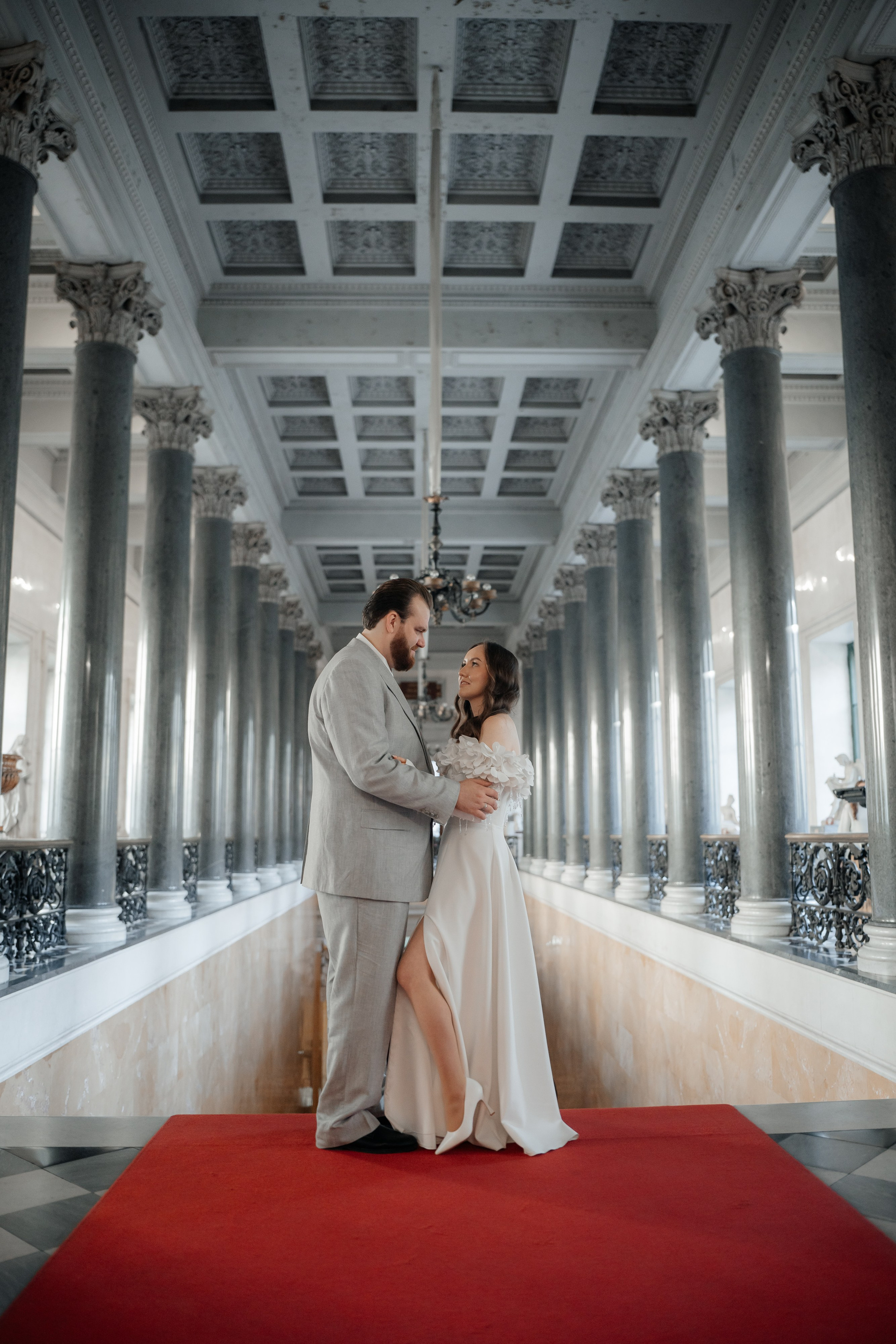 Свадебная фотосессия на Витебском вокзале, Исаакиевской площади, роспись во дворце № 1 и небольшой банке.